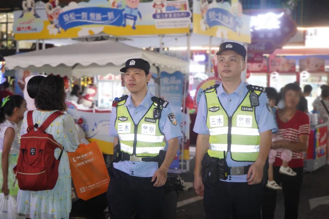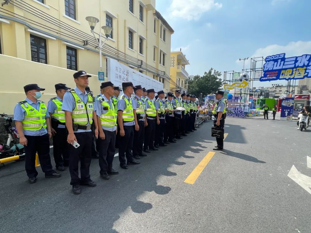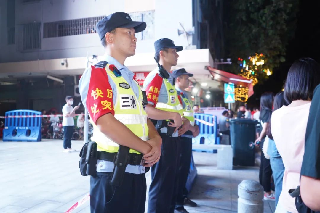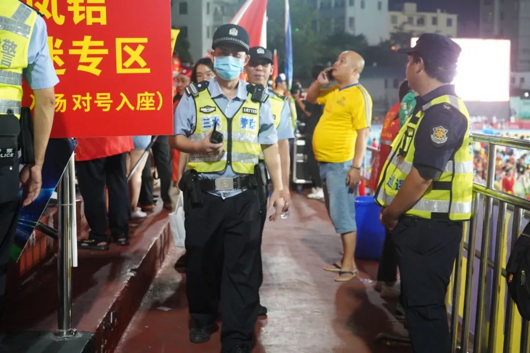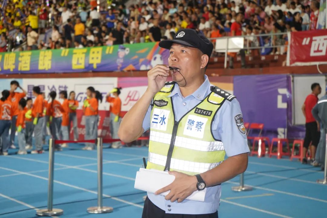 赛前,分层分级对执勤力量进行全面系统的安 保培训,确保各项工作不折不扣执行到位。在比赛过程中,全体执勤民警、辅警在各自岗位上认真履职、尽责担当,以严整的警容风貌、饱满的精神状态,展现三水公安严谨高效的良好形象。赛场内外,无处不见执勤民辅警的身影,随时为有需要的球迷、群众提供防暑降温、寻人找物等帮助,努力让群众乘兴而来,开心而归。活动期间共服务现场群众6500余次。场外,组织举办平安建设户外宣传活动,面对面为群众解难答疑,营造平安建设良好氛围,全力提升群众安全感和对公安工作满意度。