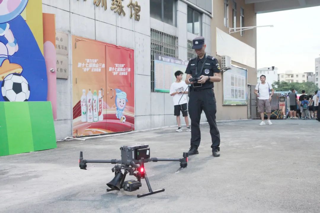 为确保活动绝对安全,每场赛事开赛前,民警细致开展排爆安全检查、消防安全检查,及时发现和排除安全风险隐患。赛事期间,在安检口、入场口开展安全检查和服务保障。投入18个安检门,设置扫码入场方式,引导运动员、嘉宾、新闻媒体记者及观众安全有序进入赛场。以云秀山体育场“一分钟”临时快反圈为中心,强化警力叠加效应,5支应急队近点防护、4支PTU外围巡逻,8支“天眼”无人机全方位巡查,形成立体化巡防之势。赛场外,对周边道路实施临时交通管制,投入交通管制牌265个,配备水马500个、铁马460个等设施,设置汽车停车位2080个、电动自行车停车位400个,确保赛事交通安全和群众出行顺畅。03恪尽职守 温暖赛事“情”