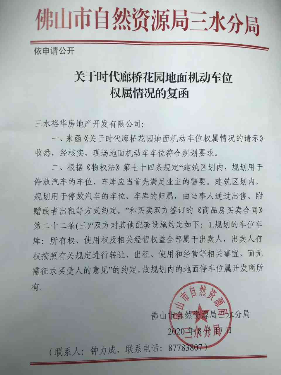区自然资源局单凭购房合同和物权法中的某一条款,就简单粗暴地认定地面停车场所有权为开发商,该局恐怕忽略了物权法出台的意义,物权法更多的是保障业主的利益而不应被我们的某些行政部门乱作为,最终沦为开发商、物业胡作非为强取豪夺的遮羞布。该法的很多条款对业主的权益都有很明确的说明,自然资源局为何不引用这些条款而只引用对开发商有益的条款呢?