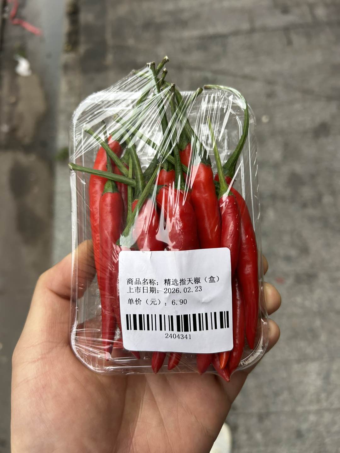 今晚饭前日日升超市买盒辣椒6.9元,好奇多问收银员