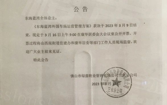 为了减少外来车辆对小区停车位的侵占,保护业主权益,物业公司2022年12月发布了《东海蓝湾外围车场运营管理方案征询表决公告》,向业主征询关于小区外围停车场的收费管理意见。