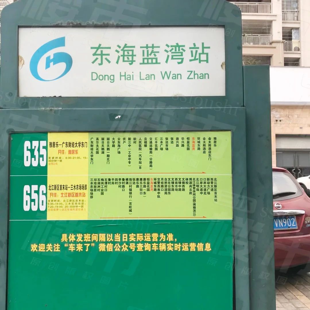 东海蓝湾公交车站就在环城东路,蓝湾首府楼下。这里虽然只有635和656两趟公交车,却可以去往三水人民医院、三水广场、沙头、万达广场、新动力广场、北江体育休闲公园等三水各地……